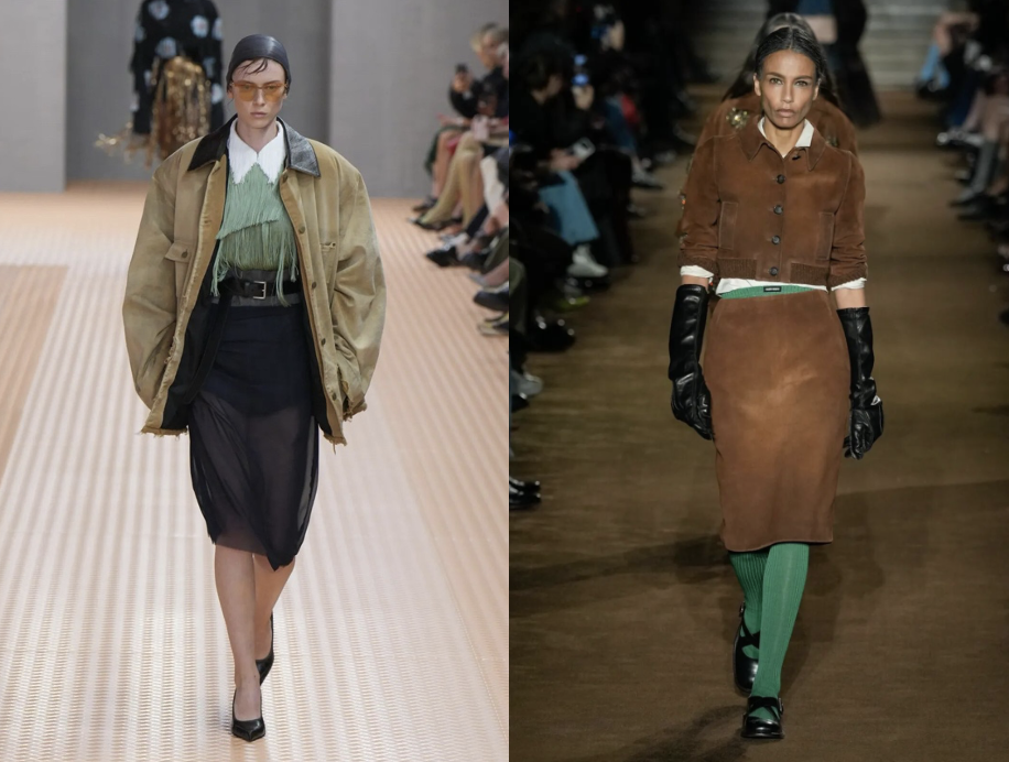 与此同时,其他玩家也纷纷涌入这片蓝海。Carhartt、Ralph Lauren等拥有工装或美式基因的品牌,顺势推出自己的Barn Jacket单品,争夺市场份额。而真正将“巴恩风”推向时尚高位的,是Prada、Gucci、LOEWE等奢侈品牌在秀场上的推波助澜。它们通过更极致的剪裁、更奢华的面料与更具艺术感的造型,为这股工装风注入了高级时装的生命力,将其从一种“风格”提升为一种“美学”。