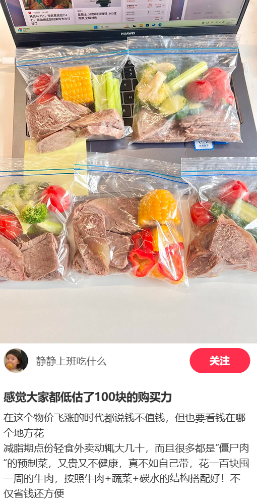 “轻食外卖减脂,还健康,自己买来囤就好了。”