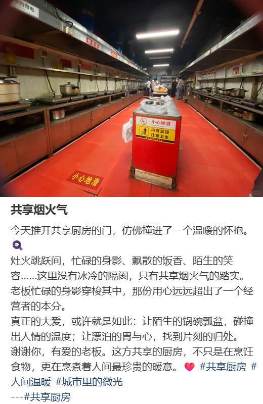 “灶火跳跃间,忙碌的身影、飘散的饭香、陌生的笑容,这里没有冰冷的隔阂,只有共享烟火气的踏实。”