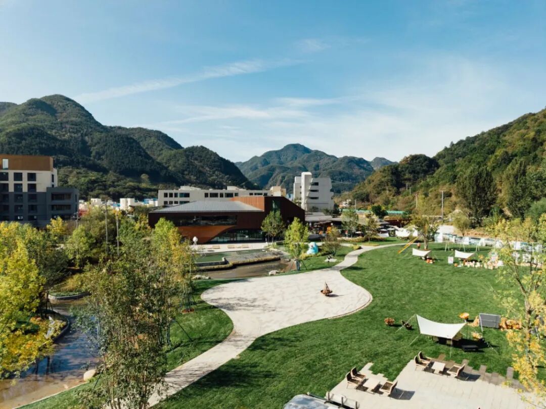 走进 “北京山谷” 园区,空间布局层次分明:入口处是儿童无动力乐园 “小浪花乐园”,为亲子互动提供专属场地;继续前行,便是开阔的大片绿地,尽展自然惬意;穿过园区内的酒店,眼前呈现成片的合院与公寓,同步配套社区食堂、餐饮及山野市集,满足日常居住与生活采购需求;再往深处走,便是兼具医疗与康养功能的中国电建康复中心,呵护居住者的健康。
