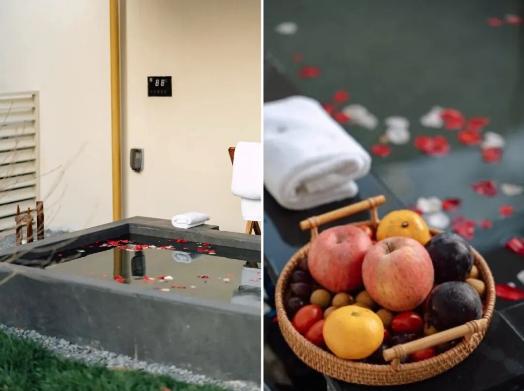 山林之外,山谷里的汤泉也是北京周边十分稀缺的资源。家住海淀的王叔叔是一位汤泉爱好者,“我之前总去北京西山或南宫泡汤泉,去一趟挺不方便,也不便宜。在北京山谷,在自己家院里就能随时享受。尤其在冬天的时候,池子里往外冒着水蒸气,整个露天小院都变得很温暖。”