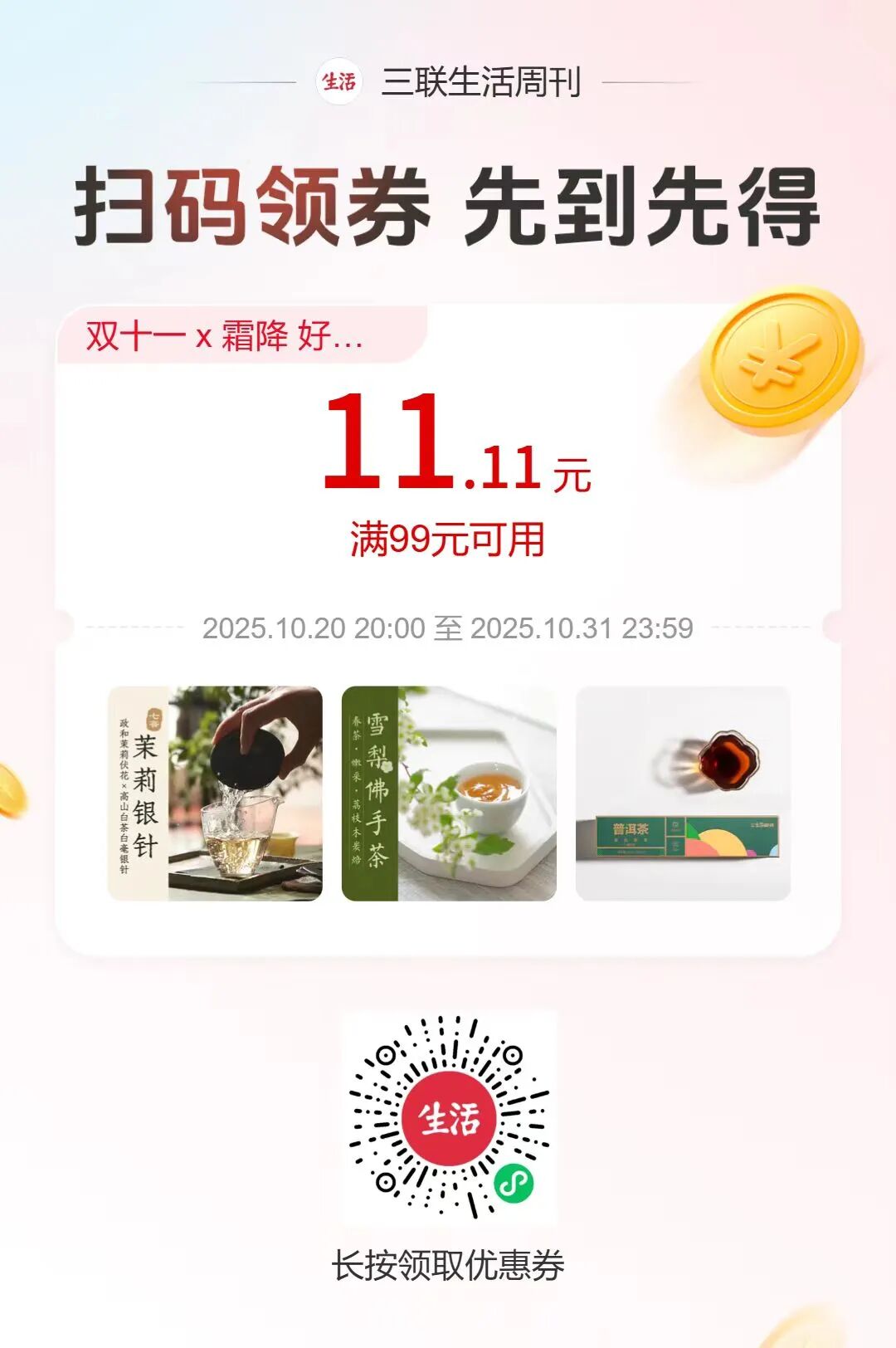 恰逢双11,三联生活生活市集为大家带来了【双十一 x 霜降 好友券】全店满99.00元可用,减免11.11元优惠券,扫码下图即可领取。