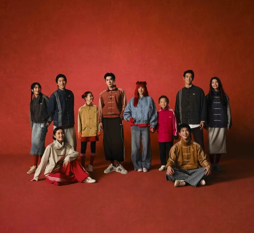 在过去的adidas的“爆款”系列里,这种“自然而个性的表达”是这些产品的基调:2025年新年推出的新中式唐装外套,把中式立领、盘扣等元素与三条纹组合,风靡海外,新中式与街头运动的融合被称为“dynasty drip”。