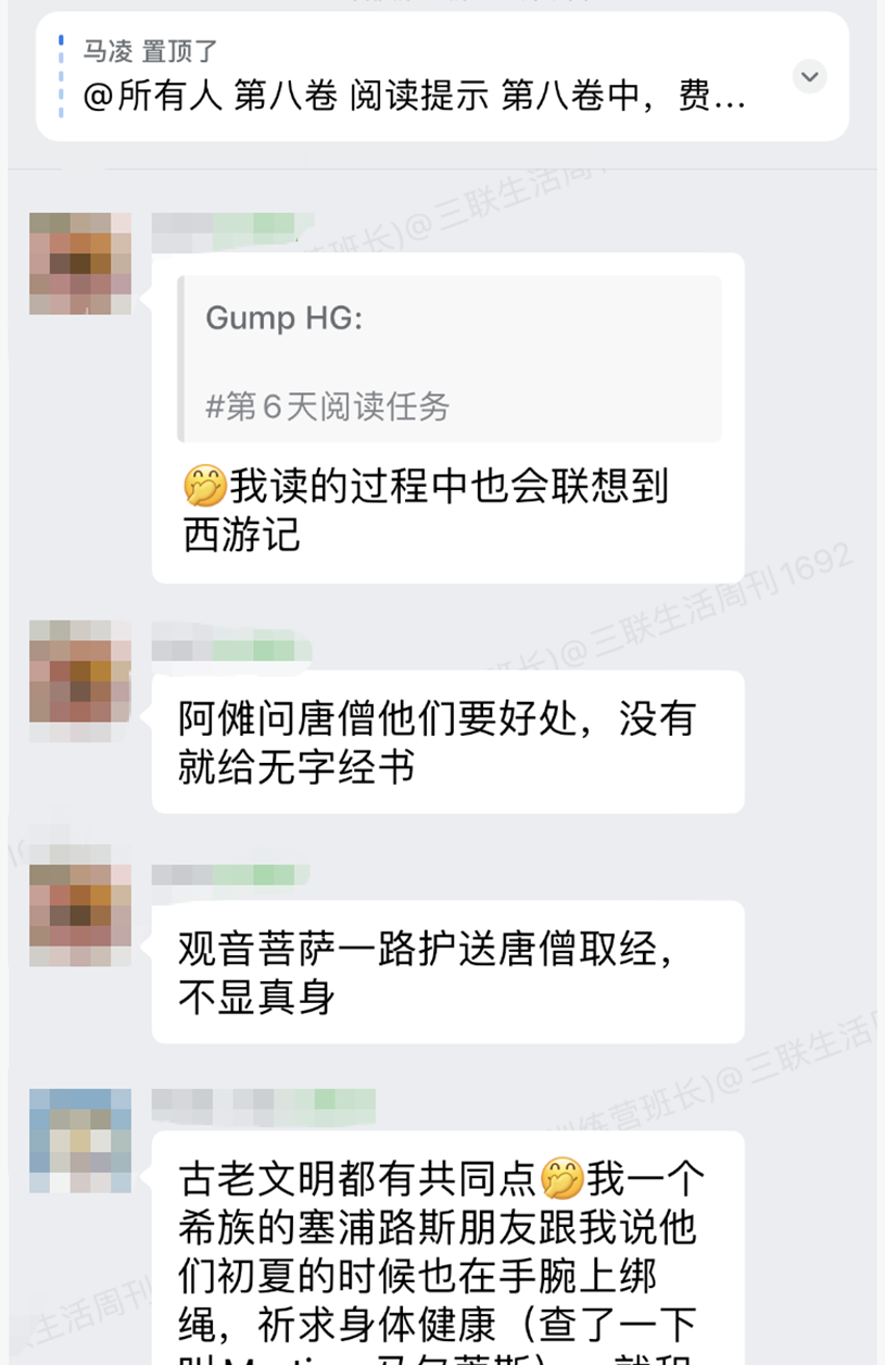 群里大家经常会热烈讨论书中的细节,这种场景已经很久没有在生活里见过了