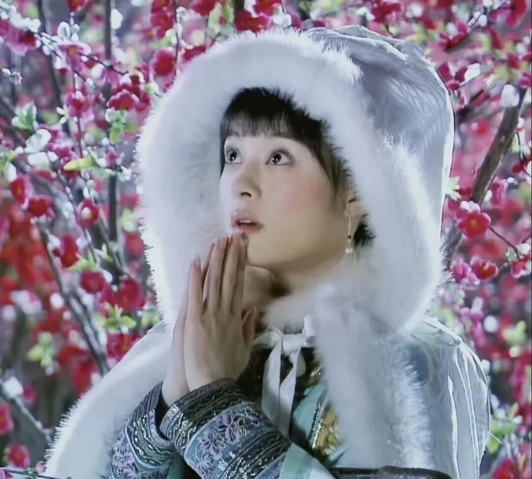 斗篷更是古装剧的造型利器,是江湖侠客的精神图腾,是后宫妃嫔的“战袍”。《甄嬛传》里甄嬛倚梅园许愿的白色毛边斗篷造型,惊艳出圈。87版《红楼梦》众人踏雪赏梅,堪称冬日里的斗篷盛宴;而最终宝玉出家时赤脚在雪地里拜别父亲,披着件“大红猩猩毡斗篷”,成为白茫茫大地中的一抹孤艳,是极致的破碎感美学。