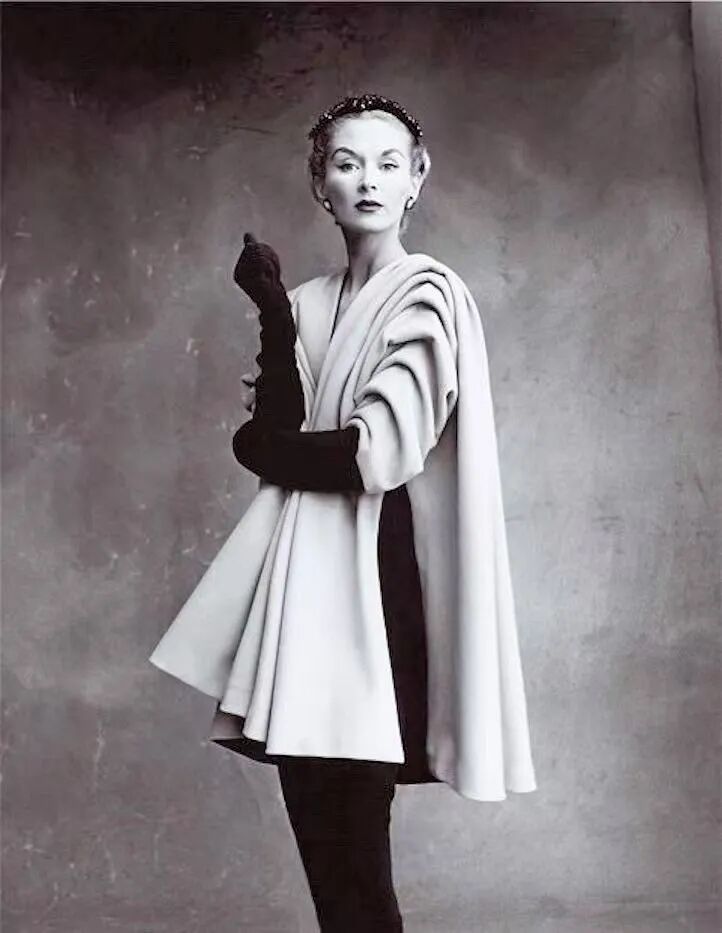 20世纪的时装设计师们则通过对斗篷的解构、复刻,将其变成自己的风格宣言。五六十年代,时装大师巴伦夏加(Cristóbal Balenciaga)以斗篷解放了女性的身体,更打破了Dior引领的沙漏腰New Look风潮。流动的线条、夸张的结构,使斗篷重新定义了女性的身形,成为解放女性的代名词——女人不必是曲线毕露的,也可以是移动的殿堂。