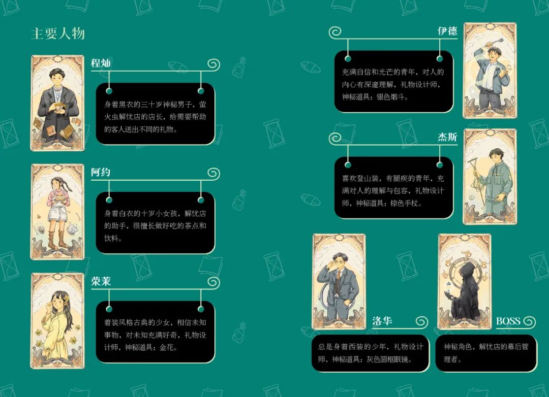作者晏菁还在故事里埋了彩蛋:萤火虫解忧店里的礼物设计师,分别代表着不同的心理学流派。这一点从设计师的名字就可以窥见端倪,如:伊德、荣茉分别对应的是精神分析流派的西格蒙德·弗洛伊德、卡尔·荣格;杰斯对应的是人本主义流派的卡尔·罗杰斯;洛华对应的是行为主义流派的约翰·华生……