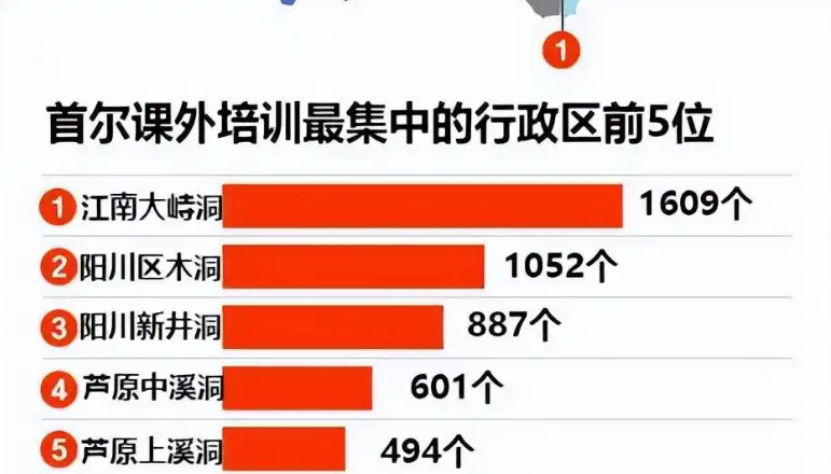大峙洞位于韩国首尔著名的江南行政区,与时尚的狎鸥亭、富裕的清潭洞不同,这里以林立的补习班闻名。根据一份来自2023年的统计数据,大峙洞拥有1609个补习班,是韩国父母心中的补习班圣地,甚至做到了逆势增长:在疫情期间大峙洞补习班数量不减反增
