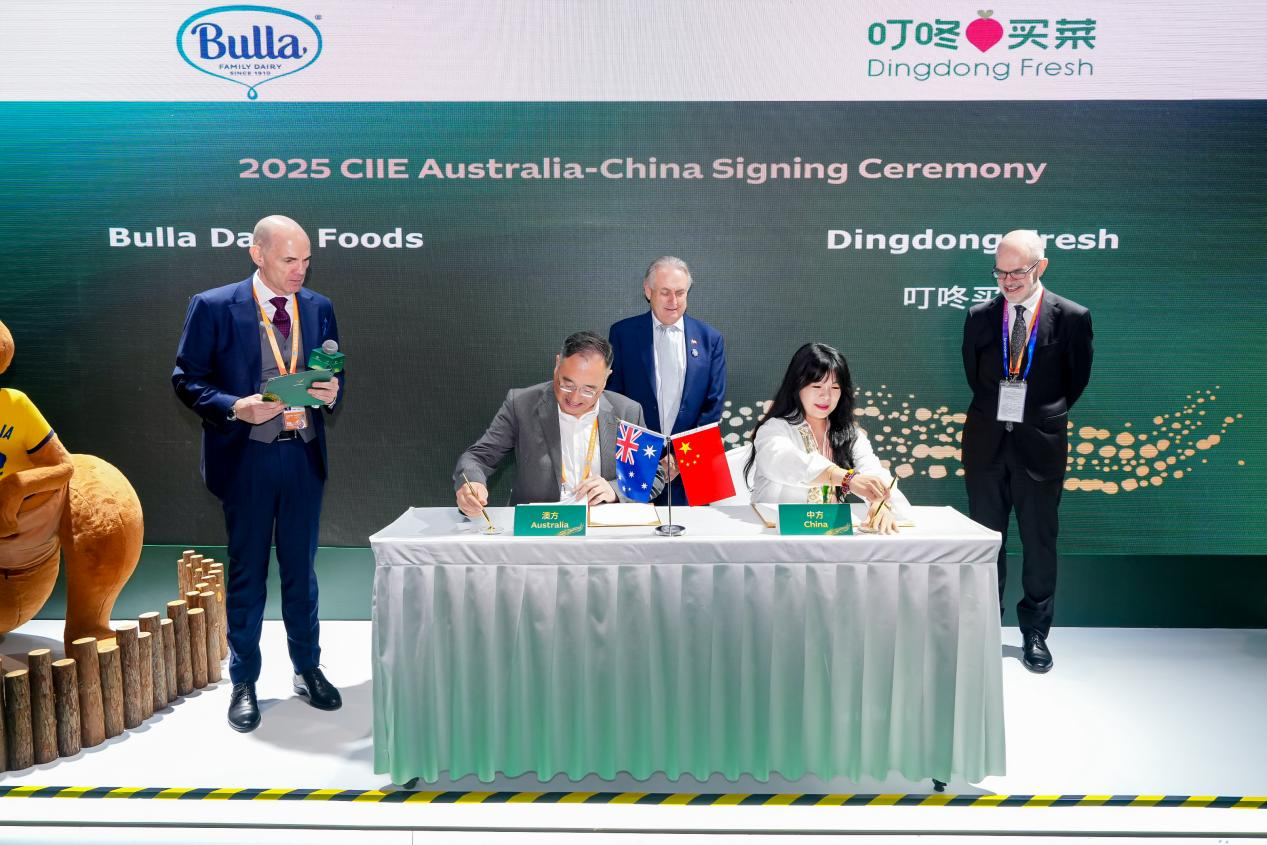 就在11月6日,叮咚买菜与澳洲知名乳制品品牌Bulla在进博会上签订了直采协议,约定将于明年采购至少500万元的乳制品商品,签约现场由澳大利亚贸易和旅游部长、参议员唐方睿见证。