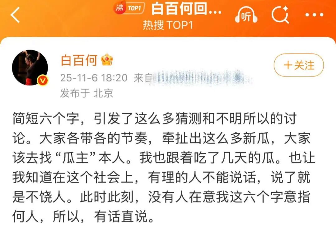 就是这么一段把白百何名字都打错了的话,对公众情绪起到了极其强烈的助燃效果,因为其中涉及资本运作、奖项黑幕,还有女性所遭遇的不公,同时合作的男性又得到好处。这几条问题,每一条都踩到了当今互联网上的集体痛点,引发舆论海啸也就是顺理成章的事情了。
