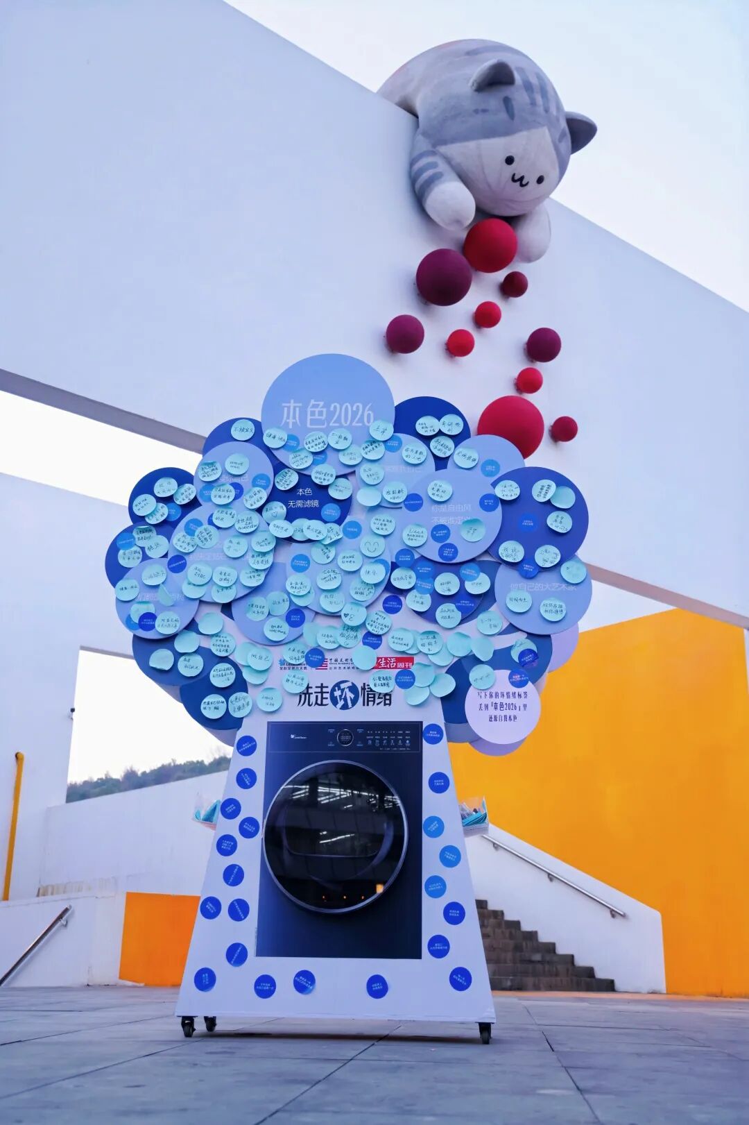 在活动现场,这种对标签的剥离被具象化了。现场摆放着一个有趣的装置:一台小天鹅洗衣机。人们亲手撕下那些压抑的、不合身的、充满偏见的标签,把它们扔进滚筒,像洗掉污渍一样洗掉这些定义的束缚。然后在另一侧写下野生的期许,贴在装置上。远看去,那些便利贴像森林里新长出的树叶,充满了回归自我的生命力。