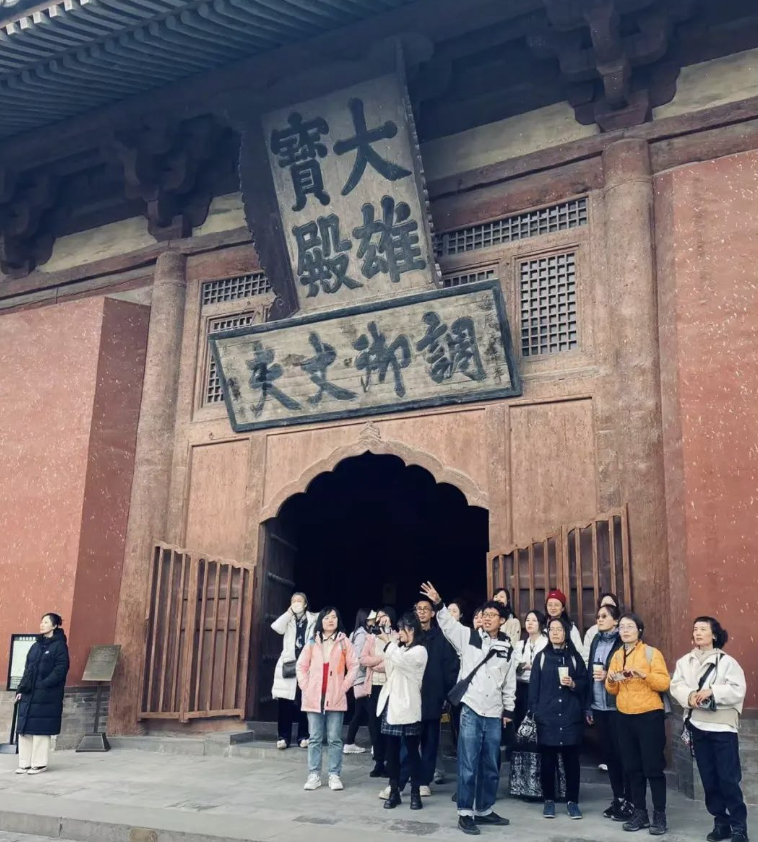 马老师与女团友们在华严寺大殿前,就"应该如何'调御丈夫"这一议题,展开了欢快而热烈的讨论-论当代女性作为一家之主的自我修养~