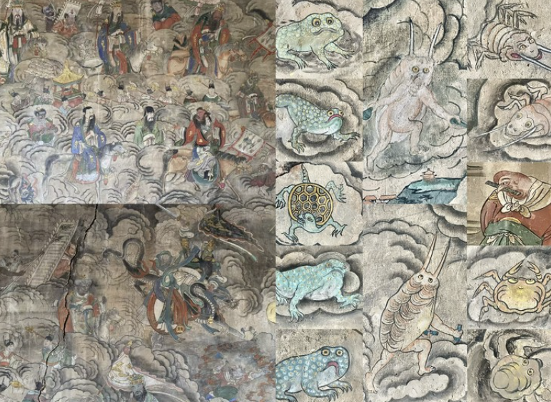 这是一个在各种地图app上都难觅其踪且日常并不迎客的省保单位。在这座寺庙里遗存的两座清代建筑保留了上百平米的壁画,其中具有当地特色的龙王施雨图为我们描绘了一个由虾兵蟹将构成的魔幻世界,也体现了古人光怪陆离的精神世界以及有别于世俗常规的审美情趣。