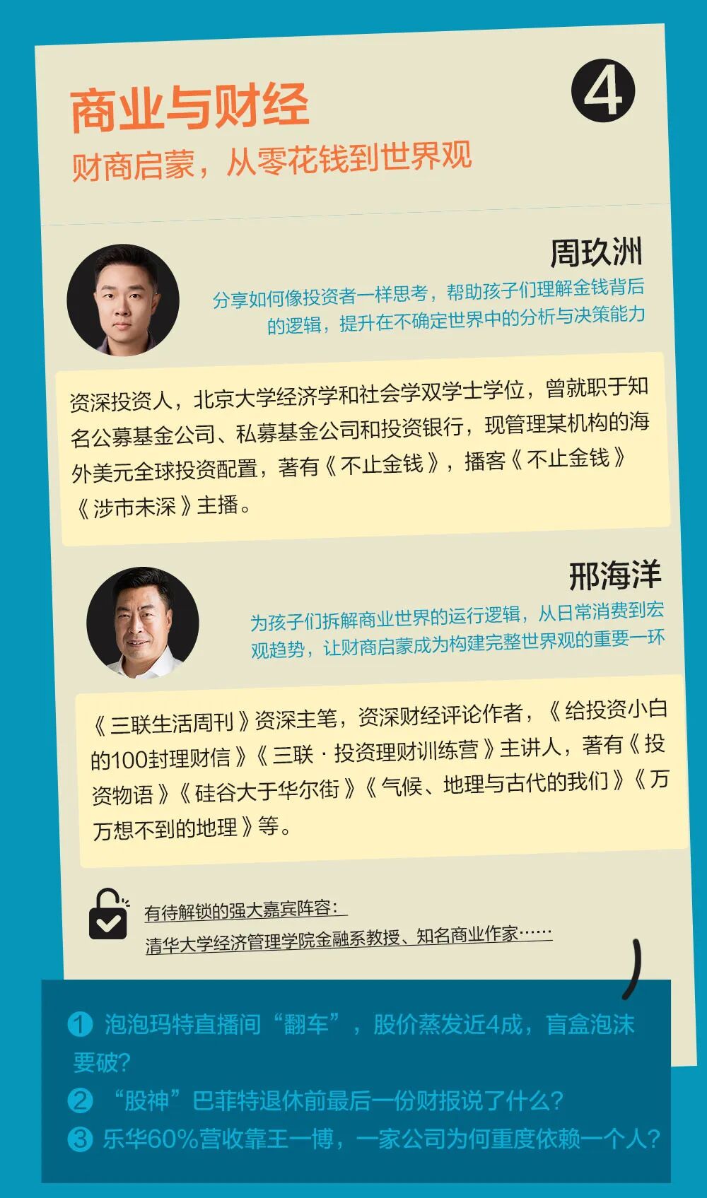 财经与商业板块,将从孩子熟悉的日常消费职业现象入手,逐步展开对经济逻辑与社会结构的认知