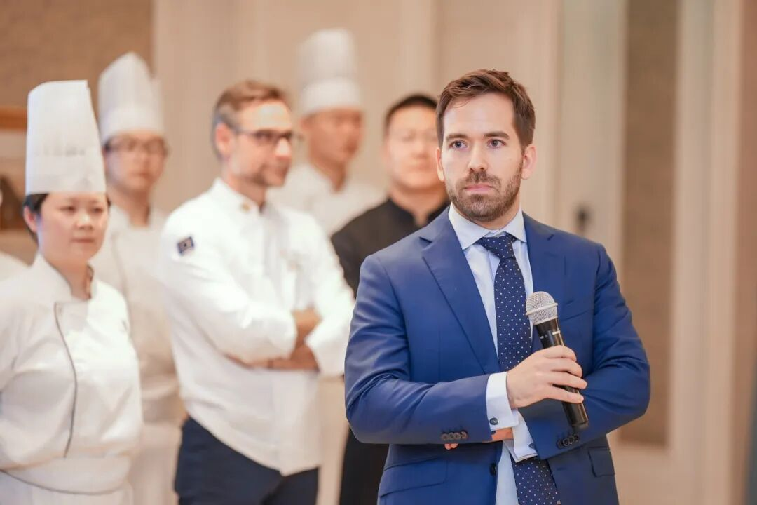 西班牙驻华大使馆经济商务处经济商务参赞贺明远先生致辞(Ernesto Negredo Pascual)表示,活动恰逢西班牙首相访华之际,这是他四年内第四次访华,凸显中西关系的紧密程度。西班牙饮食文化遗产丰富,也非常感谢这次的厨师团队为西班牙美食推广做出的卓越贡献。