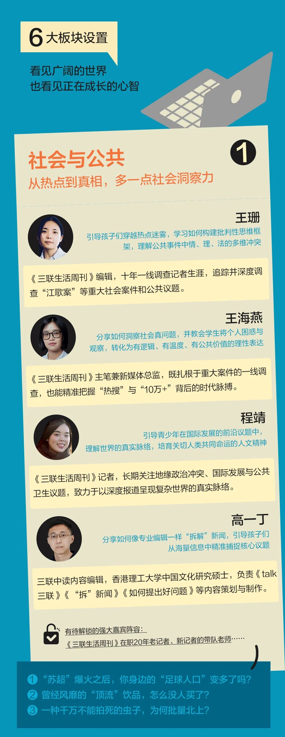 为此,我们为孩子们精心策划了《三联少年新闻思辨课》,碎片化时间就能轻松养大脑。