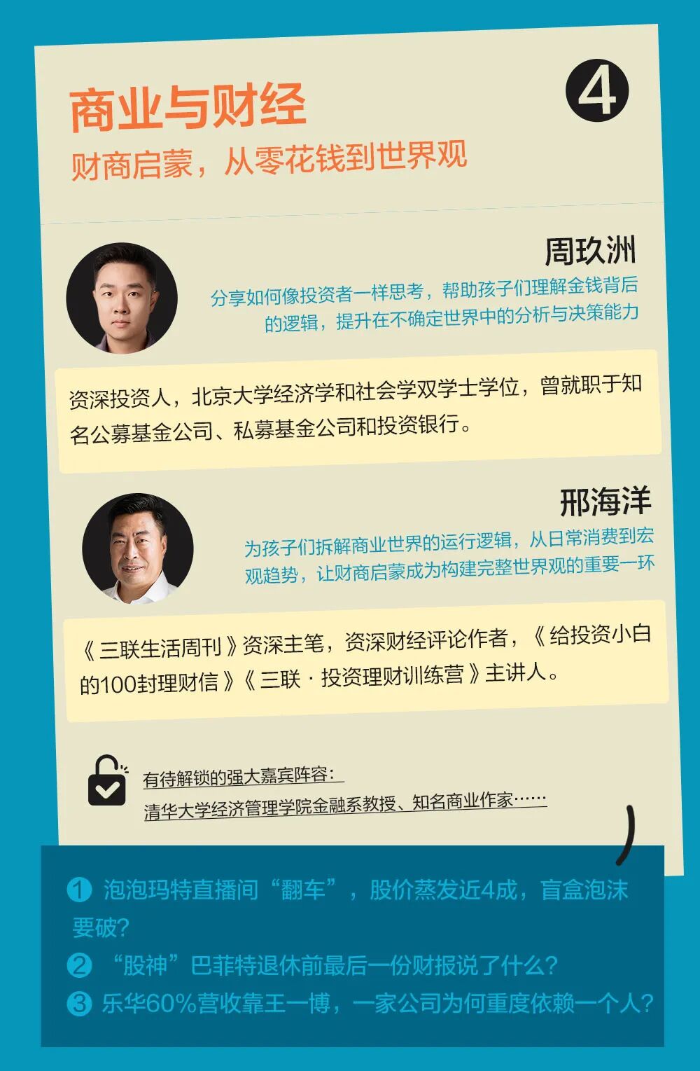 “财经与商业”板块,将从孩子熟悉的日常消费与职业现象入手,逐步展开对经济逻辑与社会结构的认知。