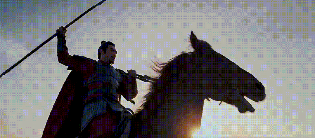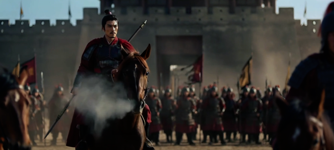 但我们会想,怎么能有氛围感呢?加一个远景去拍它,可以拍到一些旗帜,整个环境关系镜头就有了。然后我们再运镜,以霍去病为中心做一个环绕的感觉,能够看到士兵们全部环绕着他,把整个场景也交代清楚了。每一个镜头我们都有自己想要表达的东西或者情绪在里面。AI不会有这个想法,它只会觉得他骑在马上面发兵,这样差不多了。