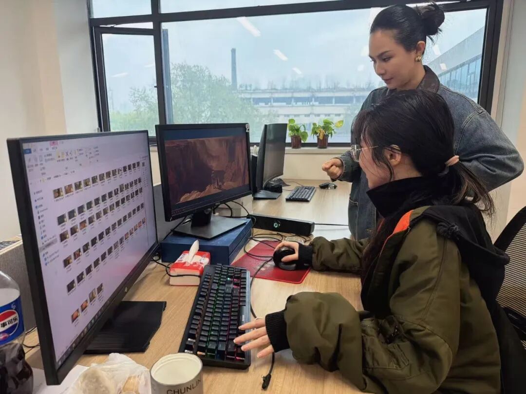 她的公司坐落在武汉市硚口区一个AI创业大楼的4层,一共就两间屋子,公司名也很“接地气”,就叫“武汉杨涵涵文化传媒有限公司”。她从2025年初接触AI影视,最初,只是为了给自己卖的热干面打广告。团队的成员,很多都是以前热干面公司的员工,人手不够,她把客服也拉来做制作人。