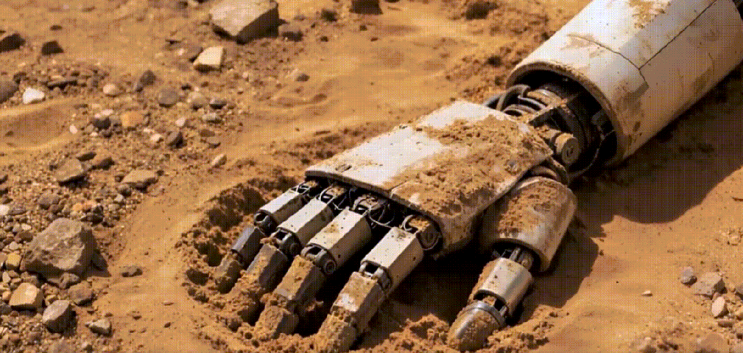 而且不止机器人手动,我要整个场景配合动起来。后面背景做了虚焦的质感,前景是有一些沙尘在空气中飘过,可以若隐若现看到非常多的颗粒。这时候,镜头再聚焦到机器人的手指,才能营造出那种苏醒感。氛围感、光影感、情绪感,这些全部都要描述进去。