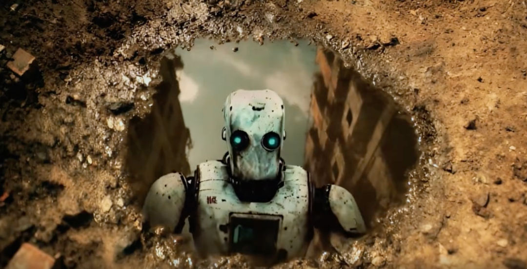 在这部片子里,画面质感、镜头语言都“出来了”,而且用了很多影视级手法。比如开头这一幕,机器人的手指一根接一根的抬起来,我们是想做一个刚刚苏醒的人的感觉。他手放在这儿,你要控制他的手不是一下抬起来,而是缓慢地动起来,要靠很精细的提示词才能实现。