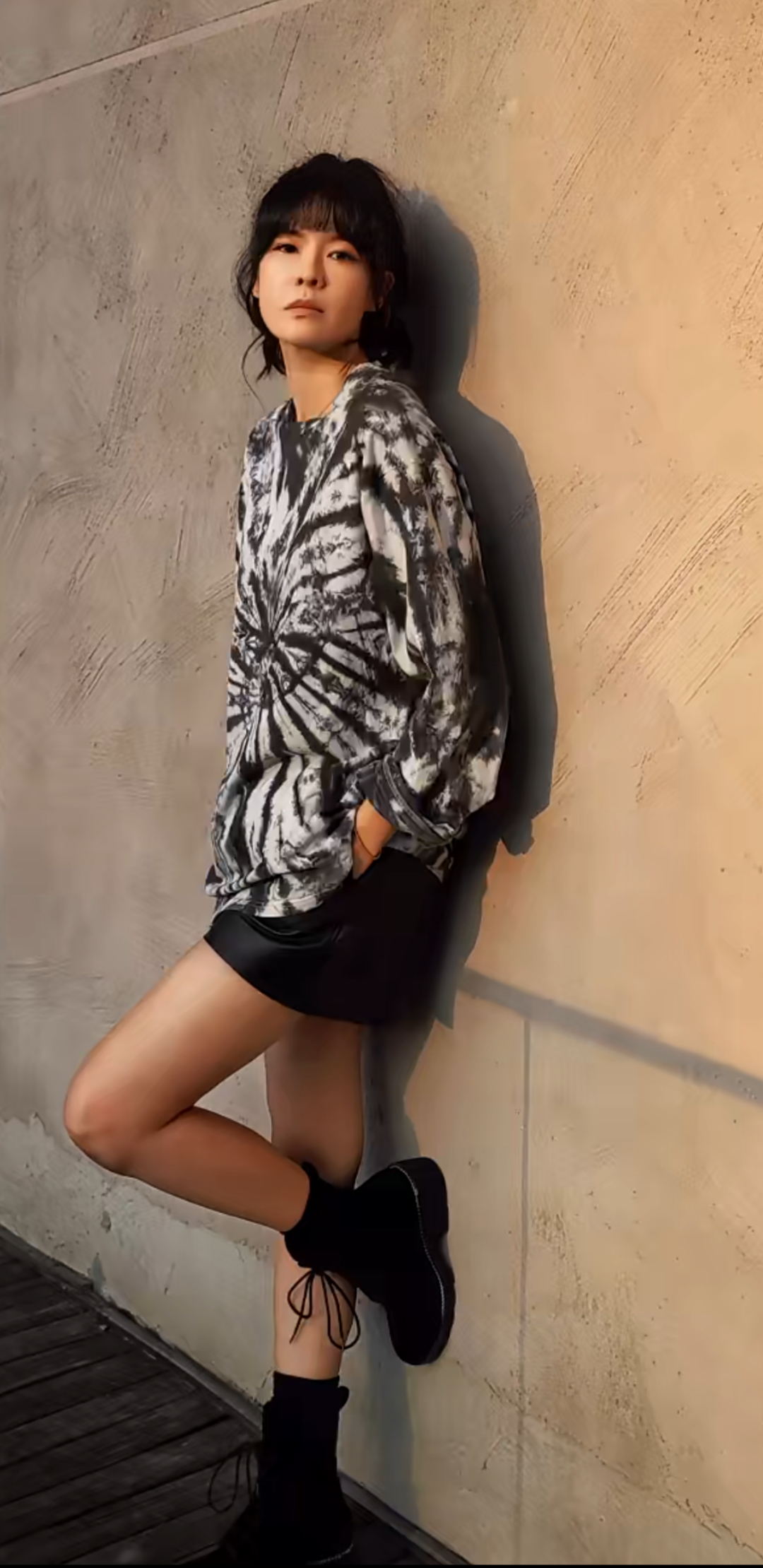 “取悦自己没有那么复杂。”她说,“跟喜欢的人或事在一起,就已经足够了。”她也承认,自己从来不是精力充沛的人。她更习惯控制投入的方向,而不是无限扩张:“我只在需要的事情里消耗能量。精力要像手电筒一样精准地照在要照的地方。”