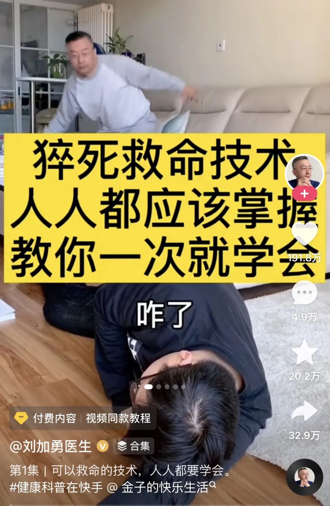 @刘加勇医生 快手账号 《烫伤急救》《心肺复苏》两期都获得了190w+的点赞