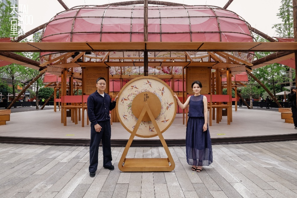 右起:太古地产中国内地零售业务总经理伍玉珊女士与插画艺术家干丁哲先生共同开启「一帧一弦 FRAME AND STRING」限时主题展览
