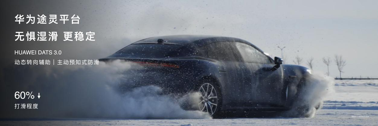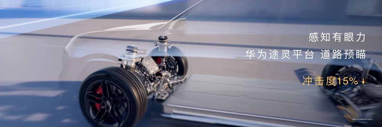 全系标配华为途灵平台,前双叉臂、后五连杆独立悬架,搭配闭式空气悬架与连续可变阻尼减震器,行驶更舒适。前四活塞固定式刹车卡钳,百零刹停距离仅33.8m。道路预瞄,冲击感降低15%HUAWEI DATS 3.0使打滑风险降低60%。御水缓行模式应急涉水深度700mm。搭载猫头鹰极致转向,最小转弯半径5.5m。
