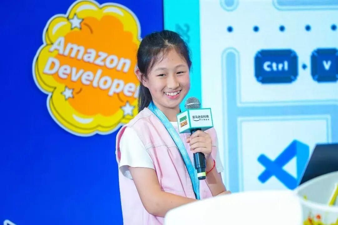 六年级下学期的一个周末,吕思彤收到亚马逊主办方的私信。她此前做的AI产品“小狐狸讲代码”,入围了亚马逊全球应用挑战赛决赛,她被邀请前往上海参加路演。