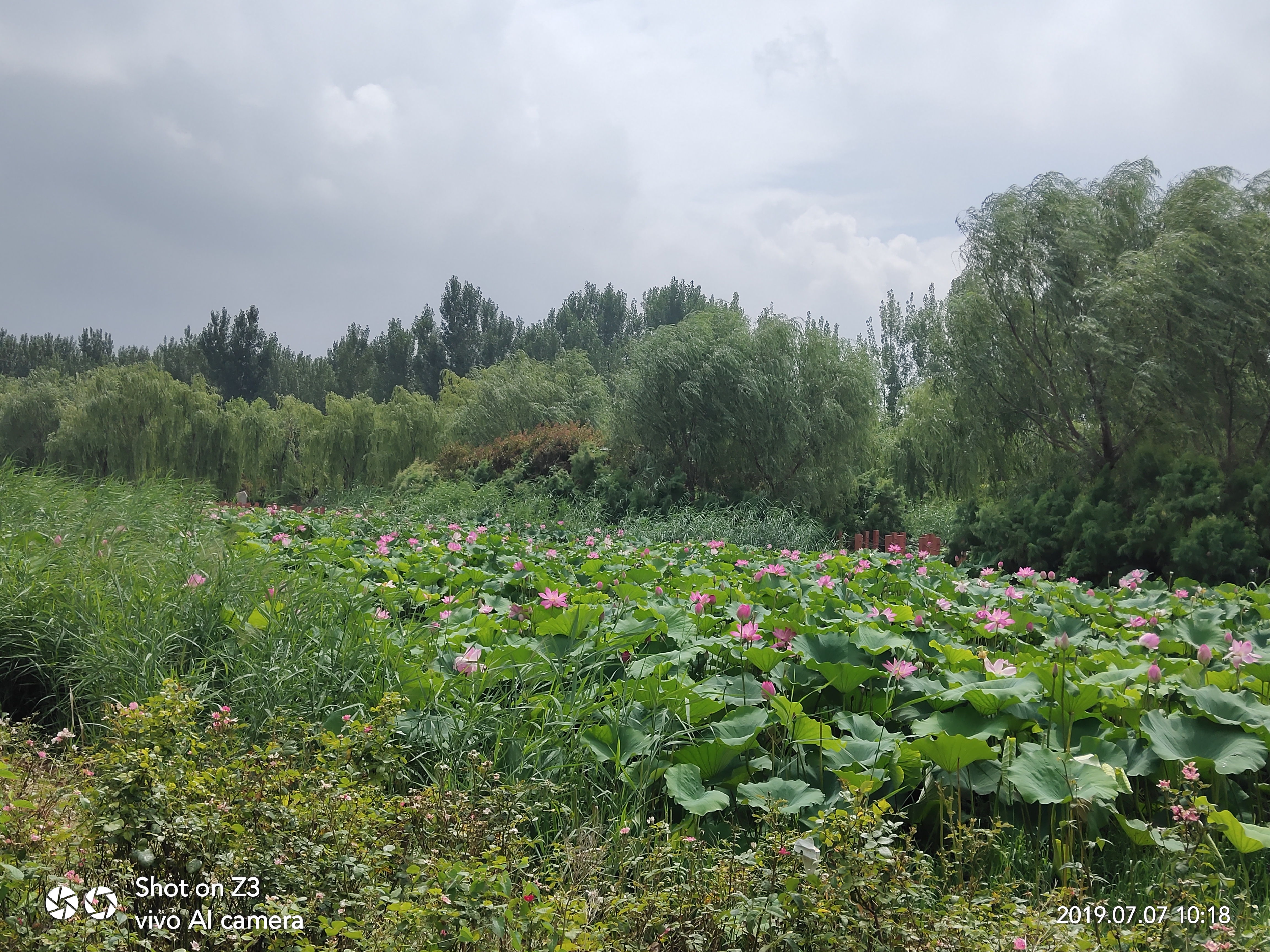 一年四季,湿地有不同的景致,但仲夏之后入暑之初的湿地是最美的,像一个待字闺中的少女,美艳娇滴,吸引着人们的眼球。只要看看周末或节日里在湿地游玩的人们,还有这边拥挤的交通,就知道这里多么受人欢迎了。大人们陪着小孩子戏水捉鱼,小伙子牵着姑娘的手观荷赏花,还有上了年纪的老人或漫步于林荫小路,或荡在路边秋千上,悠然自在的吹风、乘凉。天气晴朗的时候,湛蓝的天空,几朵闲散的云彩点缀着,微风吹过,细柳轻摆。小孩子的欢呼声,大人的呵斥声,小情侣之间的窃窃耳语,还有微风吹过之后芦苇荷叶之间发出的沙沙声,似一曲欢乐的交响乐曲,鸣奏在湿地的潜流之间。