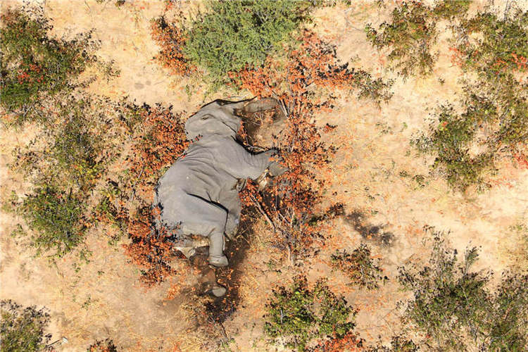 今年博茨瓦纳动物保护区内多头大象神秘死亡,“罪魁祸首”是蓝细菌。图为博茨瓦纳的大象尸体(摄于5月25日)