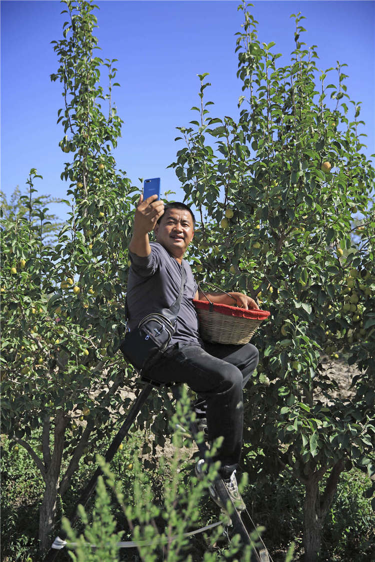 2015年,何淼调任尉犁县副县长,成立了巴州范围内第一家县级电商协会,开始大力发展电商。如今,尉犁是国家电子商务进农村综合示范县之一,电商成为农产品的主要销售渠道。李桂芬的香梨,虽被砸坏了一半,但另一半完全不愁卖。县内有何淼、黑子等在内的多位电商网红。黑子在快手上拥有30万粉丝,主要通过直播卖羊肉、甜瓜、香梨等当地特产。他同何淼一起来到果园后,一眼就看中了这些香梨,打算收购。黑子掏出随身携带的测糖仪,挤出香梨汁,将果汁滴入一个直径不过1厘米的小口,仪器立马显示出14%~15%的数字。“老铁们看一看,这个糖分真的很高。”黑子拍了视频,为直播预热。三天里,他卖了700多单香梨,合计3.15吨。