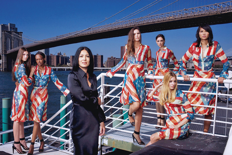 ( 法国设计师凯瑟琳·玛兰蒂诺和身着“国旗裙”的模特在布鲁克林大桥前留影 (摄于2008年1月)