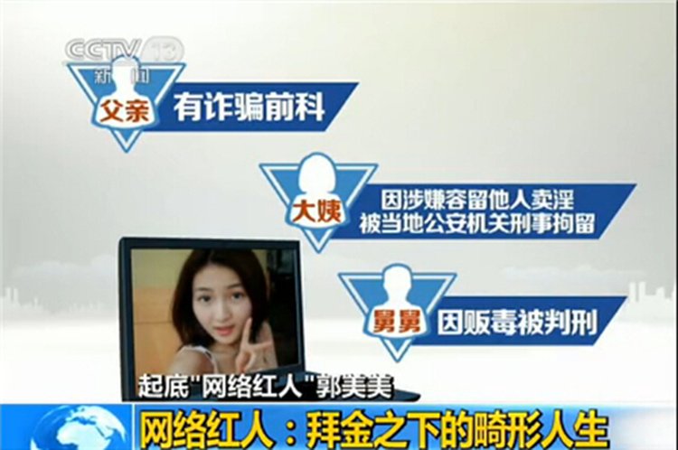 2014年郭美美被捕之际,有日本NHK电视台记者致电我。对方计划找真人出演郭美美的“浮华人生”,列出的问题只有一个方向,“郭美美为什么在男人的眼中这么值钱?她有什么神秘魔力?”我无语,一时反倒真有些为郭美美不平,冲撞对方几句新闻伦理云云。大概日本记者对这么贴近采访的中国记者,居然没搞到权色交易的细节,深为失望吧。