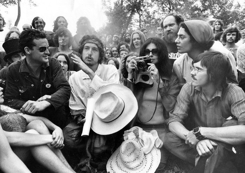 ( 1972年7月16日,鲍勃·迪伦(左二)在加拿大多伦多奥林匹克岛附近度假时,顺便参加了当地举行的Mariposa民歌节