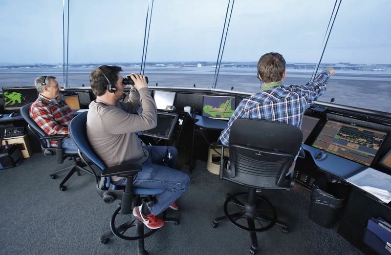 ( 4月6日,加拿大渥太华国际机场的塔台空管人员正在监测机场交通