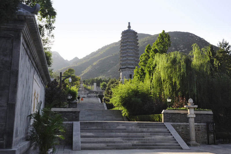 即使已经过修缮,爬北京房山境内的石经山仍然不是一次轻松的体验。紧邻着山脚是一条铁道,因为无人看管,总担心道口的栏杆没有及时落下而有人身危险。穿过铁道便开始一级一级漫长的攀爬,石阶有时变得歪歪扭扭,有时几乎垂直上下,有时又突然变成了硌脚的乱石坡,看着脚下那些已经被踩断的、和现代样式截然不同的长条石,你会立刻想到这些台阶必定年代久远。路两旁的密林里大部分是青绿色的柏树,中间唯一的一条小路在警示着你,要心无旁骛,时常在某个转弯处遇上一大群小飞虫密密麻麻地将你闷在里面,屏息疾行更增加了溽热感。单调的登山过程中,唯一的风景在于回头眺望,起伏的青山绵延不断,薄雾沉降在中间的山坳里,一些白色的村落散落其间,一条高架铁路线锐利地横穿在这片宁静之中。