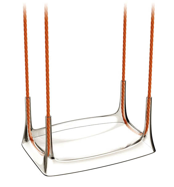 被称为“设计顽童”的法国设计师菲利普·斯塔克(Philippe Starck)为Kartell家具公司设计了一款儿童秋千椅Airway。秋千的座位使用透明塑料材质,两根橙色的绳子将透明座位轻盈地提拉起来,充满了悬空的垂钓感。