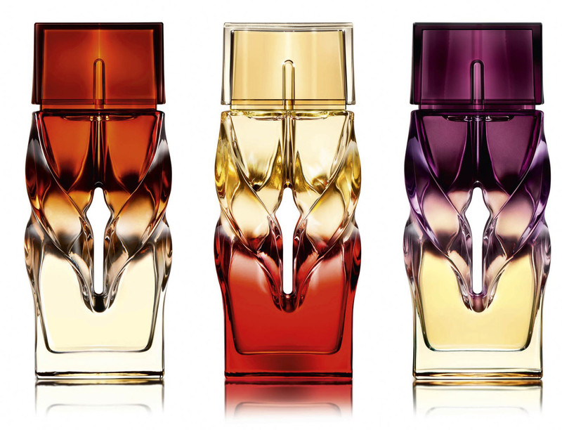 Christian Louboutin Tornade Blonde香水,独特的香水瓶设计采用经典的长方形,瓶身中间穿孔然后翻转过来,形成一连串动态的波纹。