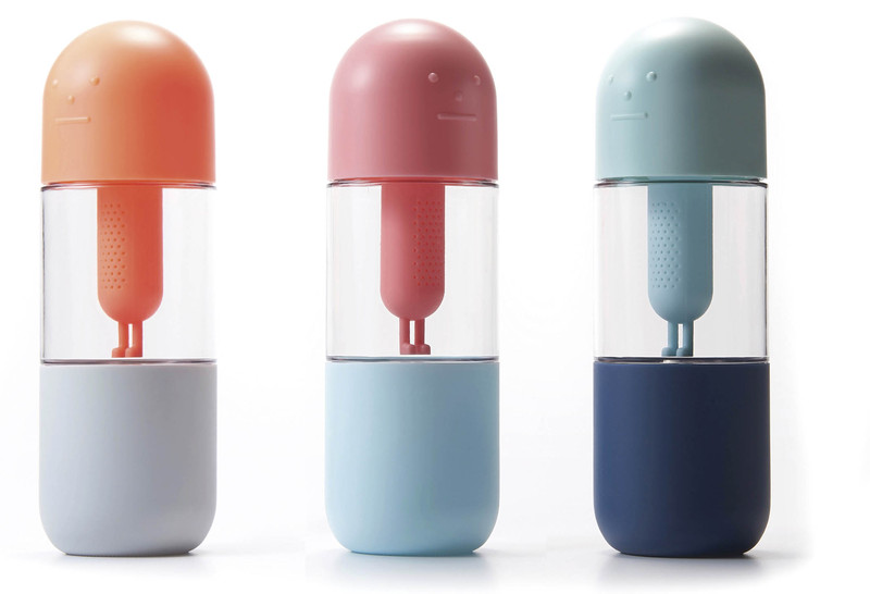 这款怪兽水瓶Monster Bottle采用了Tritan塑料与硅胶材料共同制成。它的原型来自一款热门怪物花生的卡通形象——水瓶顶部瓶盖巧妙地化为了怪兽的大头,滤茶器则变成了怪兽纤细小巧的身躯。用简单的构图符号,打造出了呆萌的造型。