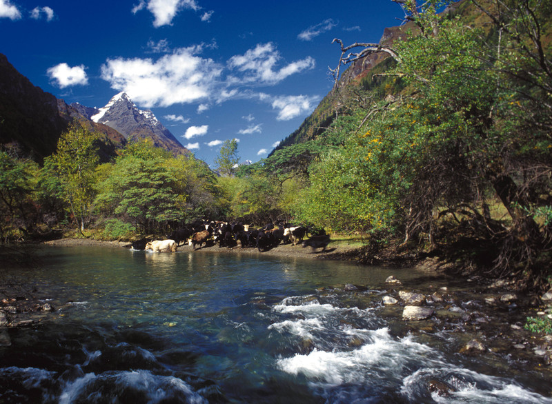 这是汶川大地震发生前的四姑娘山,它在阿坝州境内,蓝天白云,青山绿水,宁静如世外桃源,似乎成为人人向往的温馨的象征。令阿坝人自豪的是,全国一共6个世界级自然文化遗产中,阿坝州就占了3个——九寨沟、黄龙和卧龙。越来越多的旅游者从四面八方赶到这里,为的是洗涤疲惫的心灵。