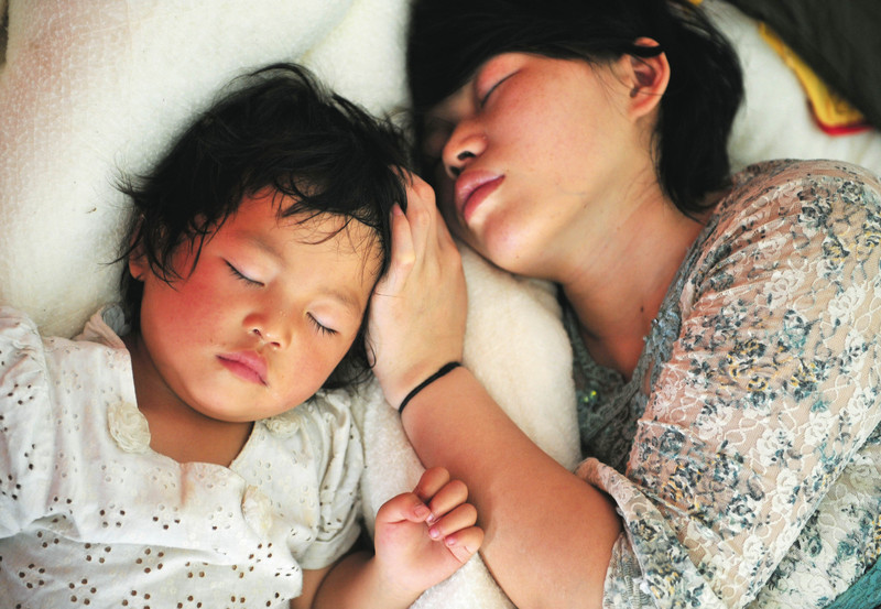 ( 5月18日,从北川撤离的母女俩终于睡上震后第一个安稳觉