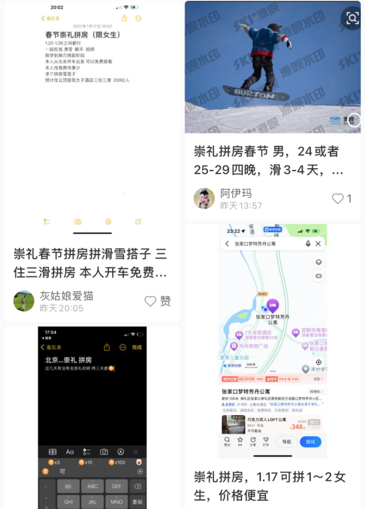 今年,像阿花这样短期拼房的特别多,以至于滑雪这件事变得特别割裂,你想不到,那些每天滑着昂贵雪的年轻人,收场后还要回到上下铺加个班。