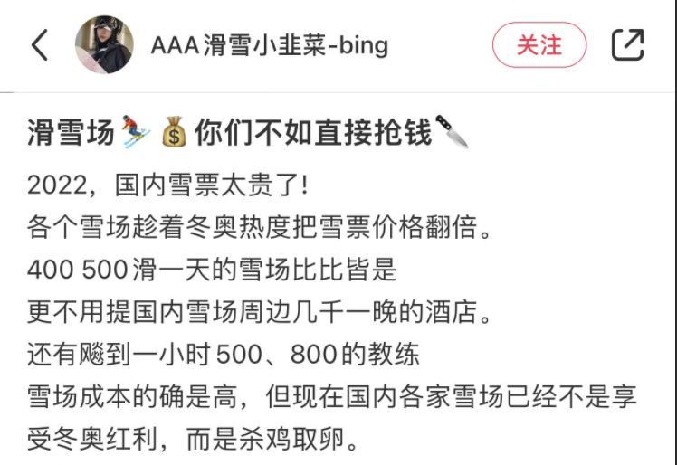 这还不含雪具租赁、住宿、交通等投入。浅算一下,不考虑交通费,每天滑雪的支出大概在1K左右。发了公积金,也经不起这么造。