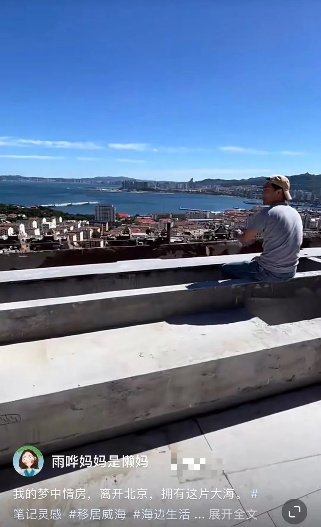 在北京时,为了方便在家工作,小熊和丈夫在昌平租着180平的房子,每月房租就要花一万二。“各方面的运营成本,在北京越来越不合适。我们本来也很宅,大城市的东西我们也越来越不需要。”既然在哪里宅都是宅,只要工作的地方能正常发快递就不受影响,客源稳定之后,去年2月,小熊和丈夫正式移居威海的荣成市。在这里,小熊每月花1500块,就能租到100多平的房子。 “在北京的时候,尽管自己在家工作,但那个大环境会让我不自觉地卷自己。今天懒了一天,明天要加倍补回来,不然会担心没有办法维持。”“相对大城市来说,威海肯定缺乏很多活力。但我的理想生活就是做自己喜欢的事,还有稳定的收入。 需求并不多,只是在北京更难实现。 ”对于向往慢生活、但又舍不下家庭事业的北京中产来说,威海这样一半海水一半都市的小城, 才是他们心中更容易抵达的“大理” 。“以前总有人说羡慕北京人,但对我们来说,其他人还能回家乡安生养老,北京人如果不想卷了,反倒是没有退路,只能离开家去陌生的城市。”雨哗说。而追求更好生活的愿望,与来自哪里无关。“在大城市呆久了,生活压力太大,每个人都梦想着能面朝大海,春暖花开。”