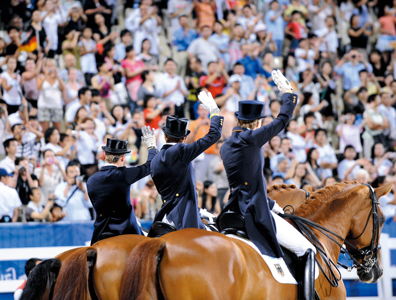 ( 2008年奥运会马术盛装舞步团体赛中,德国队获得冠军 )