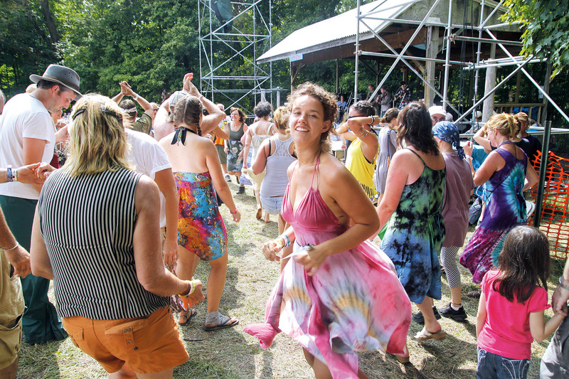 这是今年8月末的一个周四的傍晚,雨后的夕阳从树梢后探出头来,将一抹金黄色的余光洒在一片绿油油的草地上,蟋蟀们从洞里爬出来叫个不停,空气中弥漫着青草特有的芳香。这片草地原本是一个私人牧场,每年7~8月份被包下来作为费城民歌节(Philadelphia Folk Festival)的场地,组委会必须在短短的一个多月的时间里铺设栏杆,开辟停车场,架设输电设备、通讯设备、音响设备和供水设备,保障观众们的衣食住行,而民歌节结束后,所有这一切都必须搬走,不能留下一点痕迹。这一切工作,都是由志愿者来完成的,他们被分成很多部门,诺拉就是外宣部的负责人,这个部门负责宣传推广民歌文化,并为费城民歌协会发展会员。