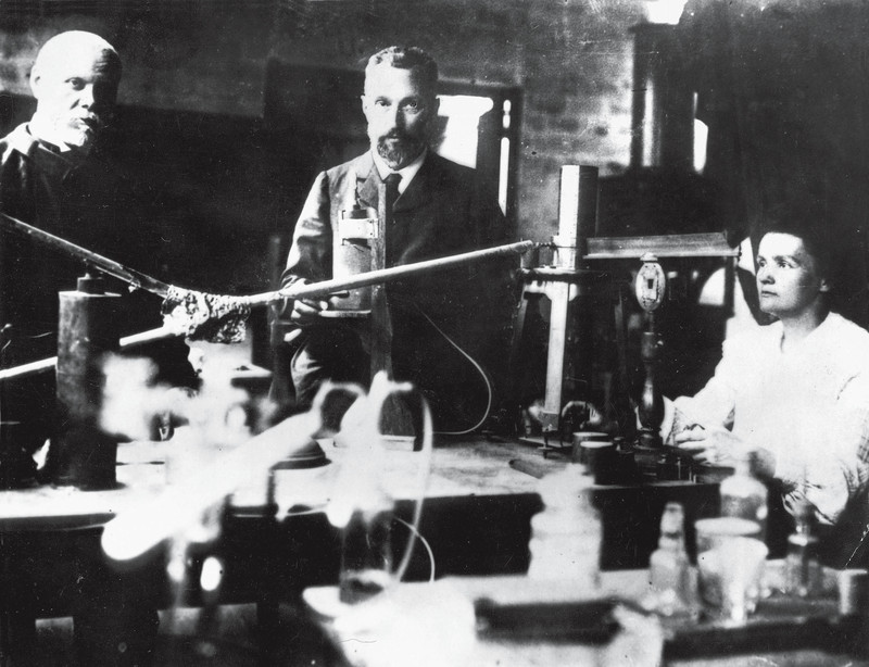 ( 亨利·贝克勒尔(左)与居里夫妇。因发现天然放射性,贝克勒尔与居里夫妇共同获得了1903年度诺贝尔物理学奖 )