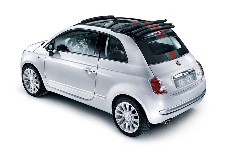 以菲亚特500作为创意基础,Gucci重新加以奢侈化设计。依旧是菲亚特全铝1.4升汽油发动机,能输出100马力的最大功率,可折叠车顶篷将采用Gucci独特的红绿格图案,所有金属把手和装饰条均施加镀铬工艺二次加工。■ )